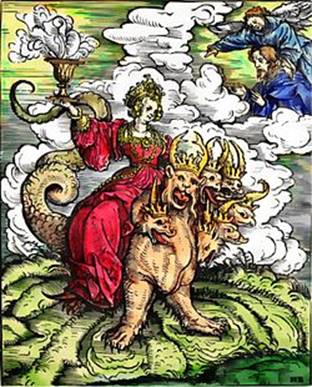 Вавилонская блудница (раскрашенная гравюра Ганса Бургкмайра, 1523 год. Иллюстрация к изданию перевода Библии Мартина Лютера)
