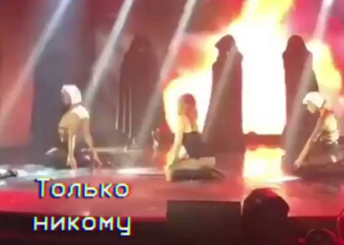 Но после него «Волшебная флейта» вдруг стала нарастать. Ксения Собчак, по-католически сложив ладошки, облачившись в нечто наподобие католической же сутаны, и возведя свои невинные очи горе – молилась какому-то богу. Возможно, древнегреческому Эросу. Потому что чуть позже, скинув сутану, она, активно двигая бедрами и сильно раздвигая ноги, так чтобы было видно пикантное, правда, всё же закрытое чем-то черным, место, изображала нам призывной порно-танец под песню Алегровой «Войди в меня» . . .