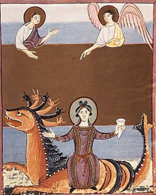 Вавилонская блудница (миниатюра Бамбергского Апокалипсиса, XI век)